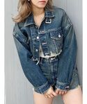 髙田真生(EVRIS)のデニムジャケット「フリンジデザインデニムジャケット【セットアップ着用可能】」を使ったコーディネート