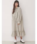 襟のフリルとならんだリボンがポイントのワンピース♡ ガーリーなデザインと落ち着いたカラーが絶妙なバランスで普段使いもしやすいアイテムです! そのままワンピースとしてもボタンを開けて羽織りとしても着られる2way仕様。 ふわっとゆるっとなシルエットなので着心地も◎ 肌寒い日にはカーディガンをさらっと羽織るのもおすすめ!