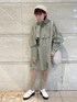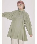 フリルのケープがポイントのシャツワンピース。 Aラインシルエットでそのままワンピースとして着るのも◎ パンツを合わせて、カジュアルダウンするのもオススメ。 デザイン性があるので1枚でオシャレに決まる主役ワンピース! 小物やシューズはアイボリーで合わせて春らしいコーデに。