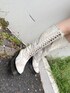 大きめサイズのTシャツにミニボトムを合わせたカジュアルコーデ♡ Tシャツの裾からちらっと見えるレースがガーリーさもプラスしてくれます! レースアップレインブーツは厚底なので、スタイルアップ効果も◎