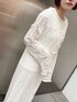 ニット素材と裾や袖口のラメの組み合わせがオシャレ見えするアイテム。 裏地はなく透け感があるので、レイヤードスタイルがオススメです! お揃いのパンツをレイヤードして大人コーデに。 すっきりとしたシルエットなのでスタイルアップ効果も◎