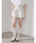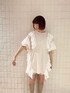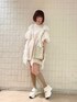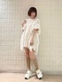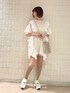 低身長さんにおすすめコーデ♡ ヒップがすっぽりと覆われるチュニックワンピースにショートパンツを合わせたカジュアルコーデ! フリルが沢山ついているので足元はスニーカーを合わせてカジュアルダウン!