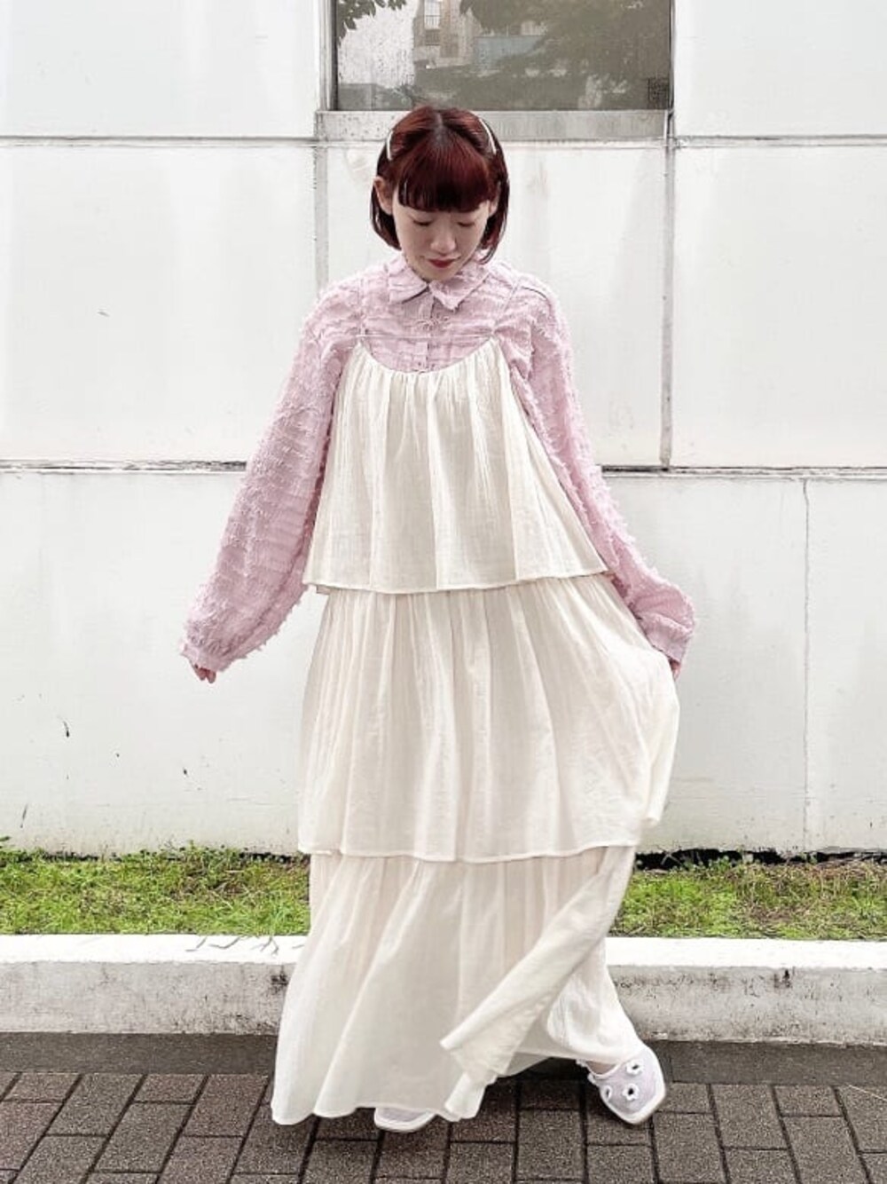 とろんっと落ち感のあるティアードキャミワンピース♡ 動く度、ふわっと揺れて着ているだけで楽しくなっちゃうようなアイテム! ピンクのシャツを合わせて、ガーリーなコーディネートに。 暗くなりがちな秋冬にピンクのシャツを1枚持っているとコーデが一気に明るくなるのでおすすめ!