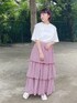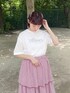 こぎみゅんコラボitemが登場! ゆったりサイズのビッグTシャツ。 レースのつけ襟やティアードスカートを合わせてガーリーに♡