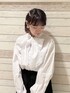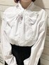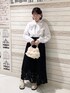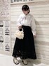 大きいリボンがポイントのブラウスにブラックのスカートを合わせたモノトーンコーデ♡ 大きいリボンが女の子らしくガーリーな印象にしてくれるのでブラックのスカートでバランスを取りました! ロングスカートもシアー素材で透け感があるので重たい印象にならず低身長さんにもオススメです。