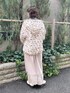 フリルやレースを使ったガーリーなワンピースにキルティングジャケットを合わせてカジュアルダウン♡ ジャケットの花柄に合わせてピンクとブルーでまとめて統一感を出しました! 暗くなりがちな秋冬もカラーコーデで華やかに♡