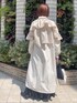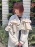 私服のモノトーンコーデ♡ たっぷりのフリルがついたトレンチコートは他とは被らないデザインです。 すっきりとしたシルエットで甘すぎず、綺麗に見せてくれます。 トレンチコートにたくさんフリルが付いているので大人っぽいブラックのロングワンピースを選びました。ベロア生地にたっぷりのレースフリルを組み合わせた、merryjennyらしいデザインです。 ギャザーを寄せたボリュームスリーブがpoint!
