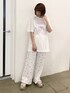 sanrio charactersとmerry jennyのコラボレーションアイテムが登場♡ 私はニャニィニュニェニョンを着てみました! 普段使いしやすいbigサイズのTシャツです。 可愛らしいプリントとルーズなサイズ感のTシャツで甘すぎないアイテム! インしても、アウトしてチュニックのように着ても◎ カットソーパンツを合わせてゆるっとコーデにしました。 おうち時間にもオススメです! ワッフル素材の小花柄のパンツでメローがアクセントに! ウエストはゴムになっていて伸縮性もあるので着心地も◎ シューズは夏らしいスニーカーサンダルを合わせてカジュアルに。 なんとクリアソールにはお花がプリントされています! 他とは被らないmerry jennyらしいデザインです!