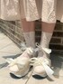 大人気のワンピースが今年も登場♡ 襟にはベロアのくるくるテープがポイント! 顔周りにデザインがあるのでアクセサリーいらずなワンピース。 ボディラインも目立たないゆったりシルエットです。 長すぎない丈感で低身長の方にもおすすめ。 シューズにはアイボリーのレースリボンスニーカーを合わせてガーリーに♡ レース×リボンにスニーカーソールで甘すぎないデザインのスニーカーです。 厚底でスタイルアップ効果も◎