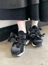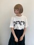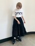モノトーンコーデ♡ 立体感のあるリボンがならんだガーリーなTシャツ! ゆったりなサイジングで着心地も楽ちんです。 リボンの色に合わせてスカートもブラックを選びました。 ブラックですがたっぷりフリルでガーリーに♡ 柔らかいガーゼ生地を使用していて肌触りも◎