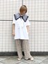 甘すぎないカジュアルコーデ♡ ねこたっぷりのBigTシャツ。ねこ好きにはたまらない1着です♡ 大きめサイズでゆったり着ていただけるのでチュニックのように着るのがおすすめ! つけ襟をつければ普段のコーディネートがワンランク上のコーディネートに。 甘くなりすぎないようにパンツを合わせてカジュアルダウンさせました!
