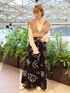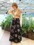 秋のカジュアルコーデ♡ キラキラのメロウトップスとニットビスチェを合わせました。 いつものコーデにビスチェをプラスするだけでいつもとは違う雰囲気を楽しめます! 透け感のあるメロウトップスを合わせることで抜け感が出てコーデが重くなりません。 手描きのような花柄のロングスカートは他にはないデザインで周りと差をつけられます♡ 綺麗なAラインシルエットでスタイルアップ効果も抜群!