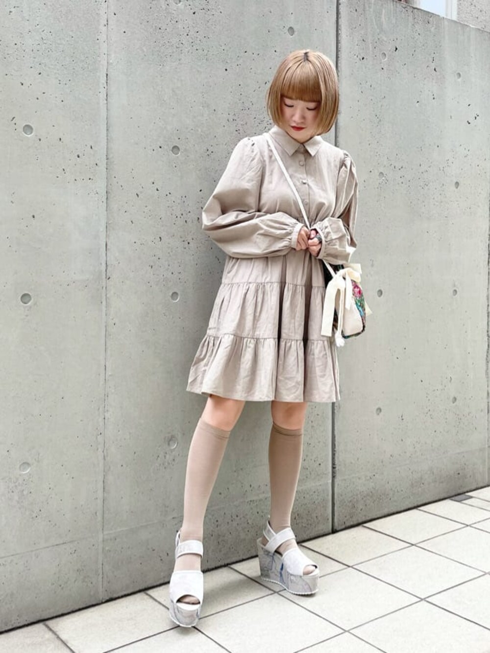 人気のパフスリーブギャザーミニワンピースが ロングスリーブになって再登場! たっぷりギャザーがポイントのミニワンピース。 ウエスト部分の切り替えはフロントを高くしているのでスタイルアップ効果抜群です! シンプルなワンピースには花柄ジャガードのバッグを合わせて華やかに♡ 厚底のサンダルを合わせるとより脚長効果になりますよ!