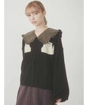 モノトーンガーリーコーデ♡ 花柄の大きな襟がポイントのブラウスは、単色の花柄で子供っぽくならず着ていただけます! カーディガンにインナーとしてレイヤードしてみました。 ニットカーディガンは、ふわふわな肌触りでとっても暖かいので秋にさらっと羽織るのにピッタリです! 猫好きにはたまらないデザイン。 アシンメトリーなティアードスカートを合わせて、大人っぽさをプラス♡