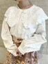 おすすめガーリーコーデ♡ 刺繍レースをあしらった大きな襟が華やかなシャツ。 とびっきりガーリーにしてくれます! ロングスカートを合わせ、少し大人っぽさをプラス。 花柄のシアーなオーガンジー生地は珍しく周りと差をつけられる1枚です♡ 花柄×チェック柄の組み合わせは遊び心満載!