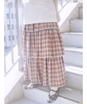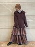 ワントーンでまとめた秋コーデ! ふわふわもちもちなで着心地の良いニットです。 ゆったりとしたチュニックシルエットでおしりまですっぽり隠れるのも嬉しいポイント! 大きなフリルカラーでガーリーさもプラス。 首元から柄物のインナーを覗かせるのがオススメです! ボトムには赤のティアードスカートを合わせて秋らしいコーディネートに。 どこか古着っぽい、秋らしいチェックはコーデを華やかにしてくれます!