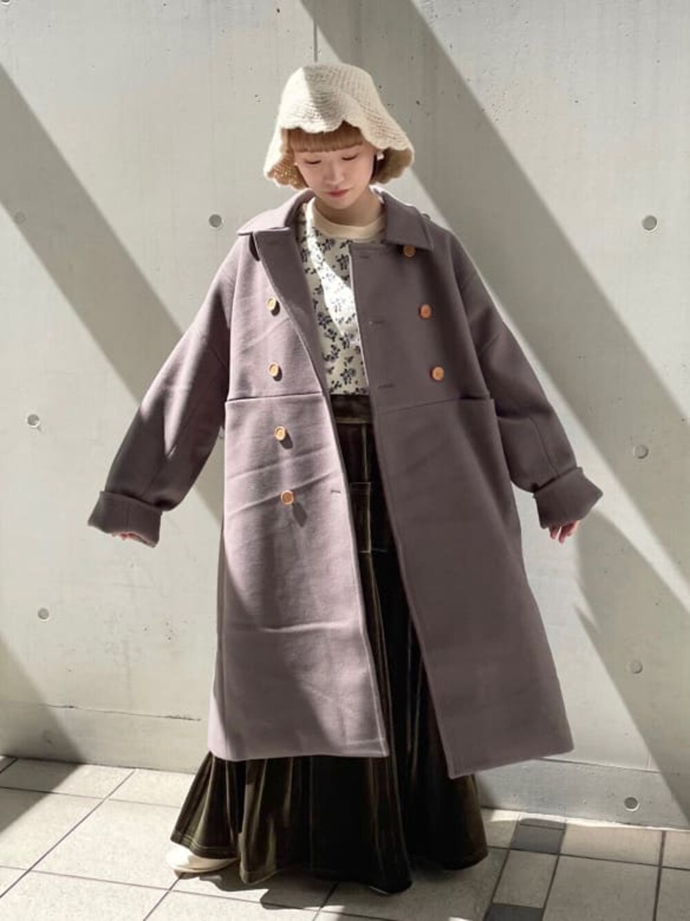 昨年大人気だったmore more loose コートが新色追加して今年も登場! ルーズなサイズ感で重ね着や厚手のニットも着込めるのが嬉しいポイント♡ ボリューミーでコーデに1枚プラスするだけでより華やかになるデザイン性の高いアウターです。 帽子や柄ニットを合わせれば、一気にオシャレ見えします! ベロア素材のロングスカートはハイウエストなので脚長効果も◎