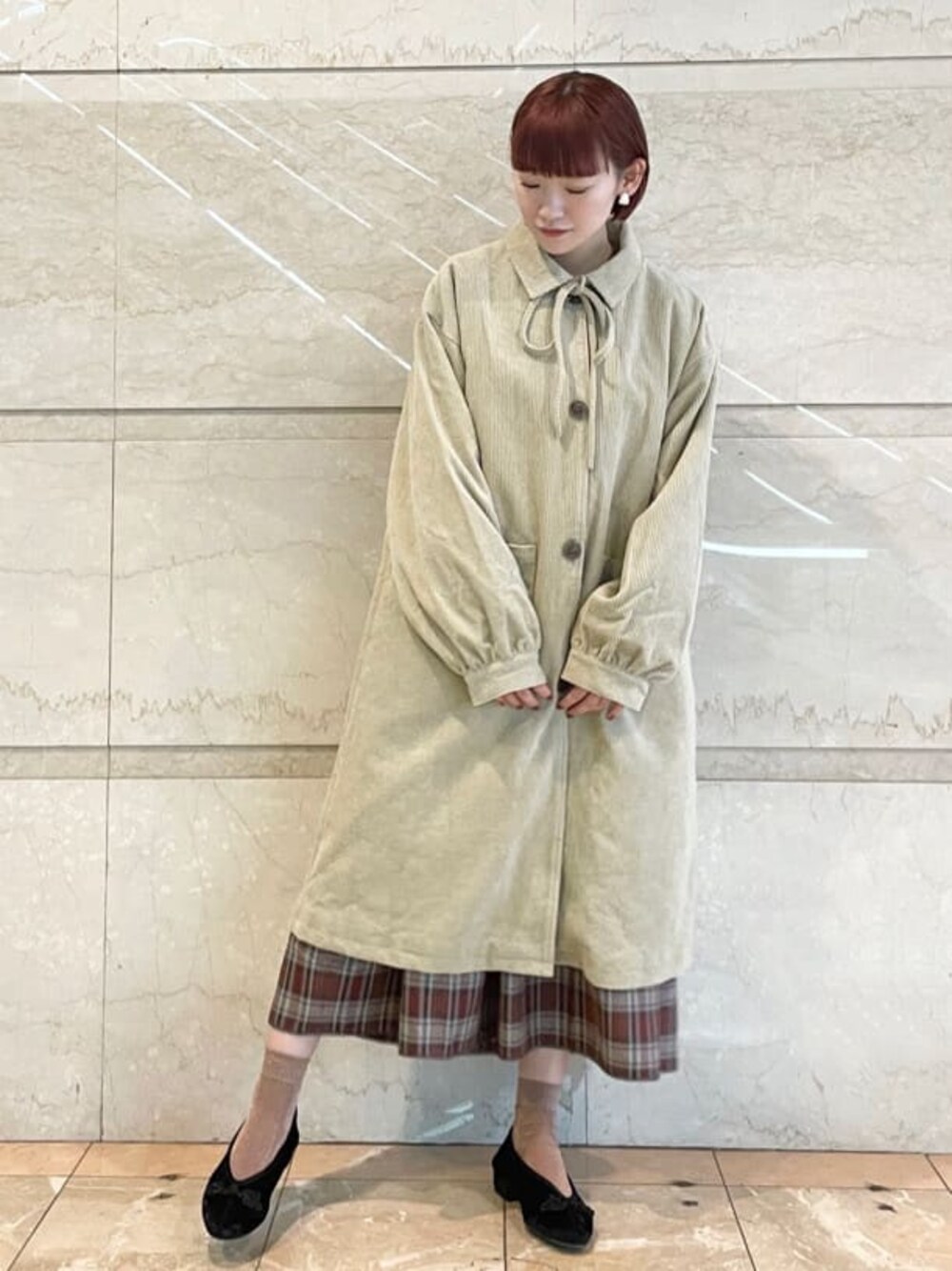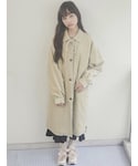 今の季節にさらっと羽織りやすいコールコート! リボンはその日の気分で取り外し可能です♡ 暖色のチェックワンピースを合わせて秋っぽく。