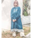 この冬おすすめのガーリーコーデ♡ ジャガード生地と胸元の2匹のbear刺繍がポイントのシャツワンピース。 光沢感があり上品な印象にしてくれます! グリーンはぱっと華やかになるカラーで1枚でコーデが完成しちゃいます! ワンピースを主役にアウターや小物はブラックを選びました。 アウターは裾に向けて広がるシルエットでワンピースの形を崩さず、ガーリーな印象に♡
