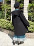 この冬おすすめのガーリーコーデ♡ ジャガード生地と胸元の2匹のbear刺繍がポイントのシャツワンピース。 光沢感があり上品な印象にしてくれます! グリーンはぱっと華やかになるカラーで1枚でコーデが完成しちゃいます! ワンピースを主役にアウターや小物はブラックを選びました。 アウターは裾に向けて広がるシルエットでワンピースの形を崩さず、ガーリーな印象に♡