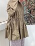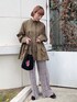 秋カラーで大人カジュアルコーデ。 ダークグリーンのチュニックは一気に秋らしい印象に。 すっきりとした スタンドカラーとフリルの組み合わせは甘すぎずカジュアルも着れるアイテム! パンツを合わせれば更にカジュアルダウンするのも◎