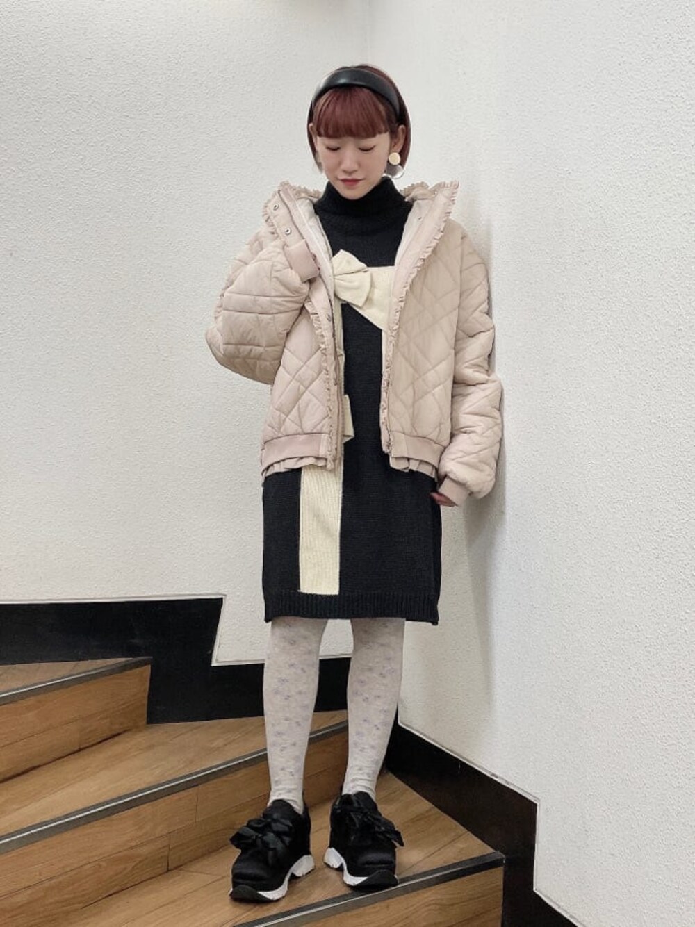 甘すぎないモノトーンコーデ♡ 大人気のワンピースが今年も登場! 寒い時期にぴったりなタートルネックのニットワンピースであったかコーデ♡ 袖のボリューム感は女の子らしいシルエットに。 大きいリボンなので甘すぎないようにモノトーンでまとめました! キルティングのアウターは寒い冬のマストアイテム! 中綿もしっかり入っているのでとっても暖かいです♡