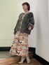 個性的なジャンパースカートはよく見ると荒野を走る馬が描かれています! ジャガード生地と馬柄がビンテージっぽくこなれ感をプラスしてくれます。 大人っぽい落ち着いた色味のカーディガンを合わせてカジュアルなコーディネートにしました! ウッドヒールを使用したブーツを合わせれば、足元までオシャレに♡