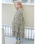 モノトーンガーリーコーデ♡ モノトーンの花柄とティアードの組み合わせが個性的なワンピース。 ウエストの切り替えが高めなのでスタイルアップ効果抜群◎ レースがたくさんついたボウタイブラウスはガーリーなので、ブラックのカーディガンとブーツを合わせて大人っぽさもプラスして甘すぎないコーディネートに。