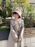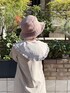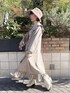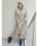 羽織にもなるワンピースを主役にコーデを組みました♡ くすみカラーでまとめたコーデです! 大きい襟と裾のフリルがガーリーなワンピースは前を開ければ羽織としても使えちゃいます! 大きめの襟で小顔効果抜群! スカートや帽子はくすみピンクで合わせて統一感を。