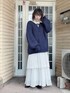 ルーズなニットにティアードスカートを合わせた大人ガーリーコーデ♡ ニットはヒップがすっぽり隠れるくらいのオーバーサイズで秋冬にピッタリのアイテムです! 重くなりがちな秋冬もシアーのスカートを合わせれば抜け感が出て、こなれた印象に♡