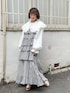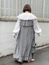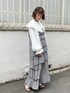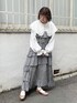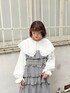 たっぷりのフリルがポイントのキャミワンピースにビッグカラーブラウスを合わせたガーリーコーデ♡ キャミワンピースは大きさの異なるチェックを組み合わせたキャッチーなアイテムです。 体のシルエットを拾わず、肩紐で丈感を調節できるため、幅広い方に着ていただけます! 存在感のあるビッグカラーブラウスは小顔効果抜群◎