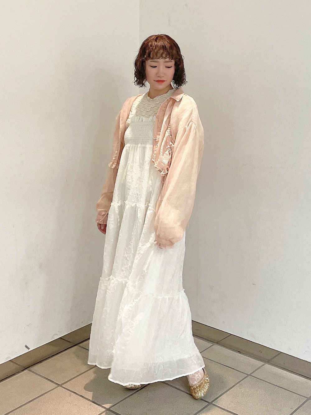 ふわっと広がるティアードキャミワンピース。 インナー次第で着回しできるのも嬉しいポイント! シアーのブラウスは羽織にもなるこれからの季節にぴったりなアイテム♡ ドロストをぎゅっと絞るとショート丈になるので、スタイルアップ効果も◎