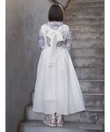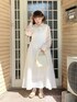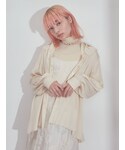 前から見るとシンプルなワンピースですが、バッグスタイルに大きなリボンが♡ 光沢感のあるサテン生地を使用した、チュニックブラウスを合わせてフェミニンな印象に。 バッグはイエロー、シューズはゴールドの春らしい華やかなアイテムを選びました!