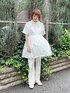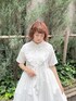 胸元のハートがポイントのミニワンピース♡ ウエストの切り替え位置を高めにしているのでスタイルアップ効果◎ 小花柄のサーマルパンツを合わせてカジュアルダウン。