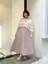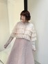 チュールボレロはシアー感がありアクセサリー感覚で着れる1枚♡ ショート丈なのでスタイルアップ効果も◎ スカートはふわっと広がるキルトスカートを合わせてメリハリのあるコーディネートに。 オリジナルのチュール柄キルトを使用した特別なスカートです♡