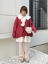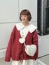 ゆるっとしたレッドのカーディガンはコーディネートのアクセントに♡ ビッグカラーとフリルが可愛らしいアイテムですが、首元がスッキリしていて細身シルエットなので甘すぎないアイテムです! ニットパンツを合わせることでカジュアルダウンするのも◎