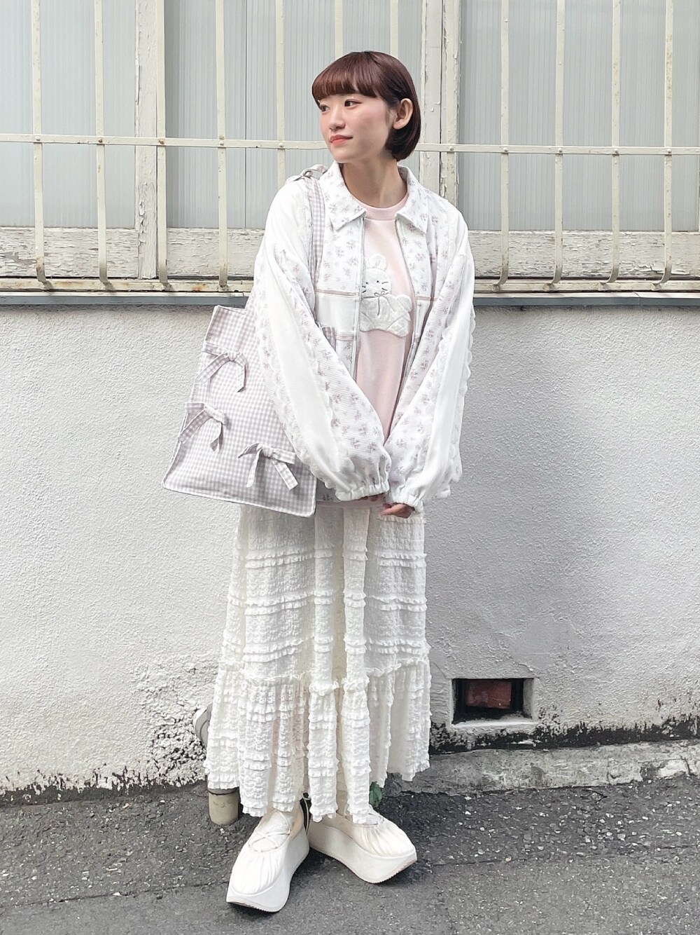 seina(merry jenny)のジャージ「floralコンビトラックジャケット」を使ったコーディネート