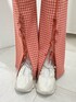 2匹のわんちゃんが可愛らしいプリントスウェット♡ ゆるっとなサイズ感で着丈も長めなので気になるヒップ周りのカバーにも。 チェックパンツを合わせてカジュアルなコーデに。 スウェットとパンツのラフなコーデもブラウスをレイヤードすることで一気にオシャレ見えします! パンツは伸縮性があって着心地も○