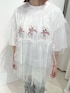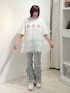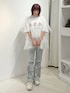 ワンちゃんが3匹ならんだBigTシャツはとろりと柔らかい生地感で、らくちんに着ていただけます♡ サイズ感はゆるっと大きめなサイズ感で153cmでヒップがすっぽり隠れる丈感です。 シアーのチュールトップスはチュールがティアードになっていてボリュームたっぷり♡ ガーリーさをプラスしたいときにぴったりです! フレアパンツは伸縮性があり着心地も楽ちん! 細身のフレアシルエットなので脚長効果も◎