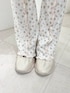 ほわっとした起毛感がキュートな、透かし編みニット♡ 柔らかい肌触りで着心地も◎ ゆるっとしたサイズ感なのでレイヤードもおすすめ! チュールフリルやリボンを詰め込んだ特別感のあるミニキャミワンピース♡ トレンドのバレエコアを取り入れることが出来ます! ウエストと肩ヒモ部分がドロスト仕様になっており、お好みのシルエットで着用していただけます。 オリジナルの小花柄をプリントした、 フレアシルエットのサーマルパンツ♡ ややタイトなサイズ感ですが、伸縮性があるので着心地も楽ちん!