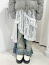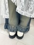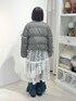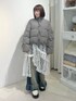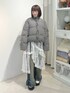 アシンメトリーに施されたリボンがアイキャッチーなパデッドジャケット。 中綿入りで暖かく軽いので着心地も◎ ハイネックで裾と袖にゴムが入ってるので 風なども入りにくく防寒対策もバッチリ! トレンドのエプロンスカートはシーズンレスで着用できていつものコーディネートにプラスするだけで華やかな印象に。 デニムパンツはウエストはすっきり、裾にかけてワイドなシルエットになっているのでシルエットがでにくく、体形カバーにも◎ ウエスト部分はゴム仕様になっているので着心地も楽ちん! シューズは厚底を合わせてスタイルアップ◎ 全体的にクッション性のある素材なので履き心地も良いです。