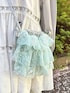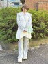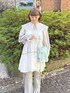 大人気のフレアベビードールに小花柄タイプが登場! 小花柄はオリジナルプリントを使用しています♡ トレンドのカジュアルに取り入れることができるアイテムです! 丸襟のブラウスは光沢感があり上品な印象に。 襟にはさりげなくレースが施されています♡ 丈が長めなのでチュニックっぽく着用したり、羽織りにするのもおすすめ! フレアパンツはカットアウトデザインで、フリルやリボンがガーリーな印象に♡ 伸縮性がありウエストがゴムなので着心地も楽ちん! ショルダーバッグは華やかでコーディネートのポイントになります! お花の刺繍の生地にスパンコールが施されている特別感のあるアイテムです♡ シューズはシアー感のあるフリルをたっぷり使った華やかなアイテム! 軽くて高めのソールなので歩きやすくスタイルアップ効果も◎
