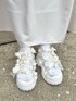 フリルやリボンを詰め込んだジャンパーワンピース♡ 光沢感のあるサテン生地なので大人っぽい印象に。 ルーズなサイズ感なので体のラインを拾わず、ゆったり着られるのが嬉しいポイント、 Tシャツは、ねこちゃんにリボンを飾ったデコラティブなアイテム! ビッグシルエットなので着心地も◎ スポーティーなスニーカーソールのサンダルにたっぷりのリボンがポイントのサンダル♡ 厚底なのでスタイルアップ効果も◎