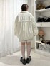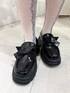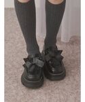アウターは中綿入りのふわふわなジャケット♡ レーステープやリボンがポイント! 軽いのに暖かく、おしりがすっぽり隠れる丈感なので寒い日も安心! ジャガード生地のワンピースは光沢感があり華やかな印象に♡ フリルやチャイナボタンもポイントです! 1枚できるのはもちろん、パンツやニットのレイヤードもおすすめです。 大きなリボンがポイントのローファー! 厚底なのでスタイルアップも叶えてくれます♡ また普段使いしやすいアイテムです。