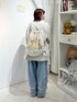 【モコゾウ×merry jenny】 モコゾウのお顔がどーんっとのせられたナップサック。 大容量でポケットもたくさんあるので使いやすさも◎ カジュアルなワークブルゾンにフリルやリボンでガーリーに仕上げたアウター♡ 大きめなポケットで機能性もあり、シンプルなデザインなのでデイリー使いにもおすすめ! スウェットはゆるっとしたサイズ感で楽に着られて普段使いしやすいアイテム! 153cmでヒップがすっぽり隠れる丈感です。 春にもたくさん使える柔らかいカラー展開♡ トレンドのバレルレックデニムにレースやフリルがついて登場! ウエスト部分は脇がゴムになっているのでインした際も綺麗に見えます。 カジュアルなアイテムなのでトップスはガーリーなアイテムを合わせるのがオススメ!