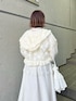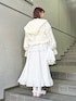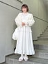 立体感のあるシアー素材のフードブルゾン! 短めの着丈でスタイルアップ効果も◎ 袖口にはゴムが入っておりボリュームのあるパフスリーブもポイント! 小花柄が春らしいロングワンピース。 すっきりとした首元やレース、小さなリボンが甘すぎないフェミニンな印象になります♡ ウエストはゴム仕様なので、すっきり見えつつ着心地も◎ 低身長さんも着やすい丈感でフラットシューズでも着用可能です! バッグは3種類のレースを重ねたとっておきのアイテム♡ サイドのリボンで長さ調節が可能です! 入口部分はゴムになっているので見た目だけでなく使いやすさも◎ バレエシューズはたっぷりのフリルで足元まで華やかにしてくれます♡ 甲部分はゴム仕様なので脱ぎ履きしやすく、履き心地も◎