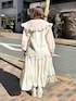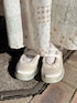ブラウスとニットをレイヤードしたようなデザインのトップス♡ 大きめの襟は小顔に見せてくれます! 長すぎない丈感なのでスタイルアップ効果も◎ ボリュームのあるロングスカートと合わせてもバランスよく着ていただけます! チェックと小花柄を組み合わせた、淡いトーンのパッチワーク風フレアスカート。 レースやフリルもついていてとっておきな1着です♡ ウエストはゴムなので着心地も◎ フリルゴムやリボンのステッチがポイントのスニーカー。 光沢感のあるサテン素材でスニーカーですが、カジュアルすぎないアイテムです!