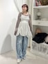 オリジナルの花柄をプリントしたミニワンピース! アジャスターで簡単にウエスト位置を調節でき、 裾はドロストで長さを変えられるので身長、骨格問わず着用出来ます! 畳んでもシワが気になりにくい素材なので旅行にもおすすめ♡ シアートップスはいつものコーデにプラスするだけでおしゃれ見え♡ デコルテが綺麗に見えるように首元はすっきりとしたデザインになっています! トレンドのバレルレックデニムにレースやフリルがついて登場! ウエスト部分は脇がゴムになっているのでインした際も綺麗に見えます。 カジュアルなアイテムなのでトップスはガーリーなアイテムを合わせるのがオススメ! フリルがたっぷりついたバレエシューズは足元まで華やかにしてくれます♡ 甲部分はゴム仕様なので着脱しやすく履き心地も◎