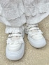 うさぎやリボンモチーフを散りばめた遊び心のあるTシャツ。 全体的にゆったりとしたシルエットで着心地も◎ お花柄のシアーチュール生地を使用した付け襟。 生地を2枚重ねているのでより華やかな印象になります♡ バルーンシルエットのパンツにレースがたくさんついたガーリーなアイテム♡ 裾のフリルがコーディネートのアクセントに! ウエストはゴム仕様で着心地もよく、裾もゴム仕様なので着丈を気にせず着用できます。 シューズはフリルとボリュームのあるソールがポイント! スタイリングのアクセントにもなり、足の細見えが叶う1足です♡