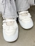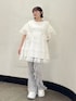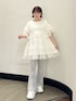 Tシャツ生地にチュールをたっぷり重ねた楽ちんなのにオシャレ見えするワンピース! ウエストはゴム仕様になっているのでメリハリのあるスタイリングになります♡ フレアパンツはストレッチの効いたリブ生地です! リボンがポイントでミニスカートとのレイヤードもおすすめ♡ シューズはフリルとボリュームのあるソールがポイント! スタイリングのアクセントにもなり、足の細見えが叶う1足です♡